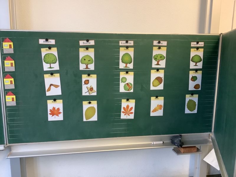 Die Schülerinnen und Schüler der Jahrgangsstufe 1 setzten sich am Projekttag mit dem Thema “Herbst” auseinander. Sie lernten die Namen und Merkmale verschiedener Bäume auf dem Schulhof kennen, gestalteten herbstliche Fensterdeko und stempelten mit Korken einen Herbstbaum. Bei einem Naturspaziergang auf dem Schulhof legten sie in kleinen Gruppen kreativ eigene Legebilder mit allem, was sie auf dem Schulhof fanden.